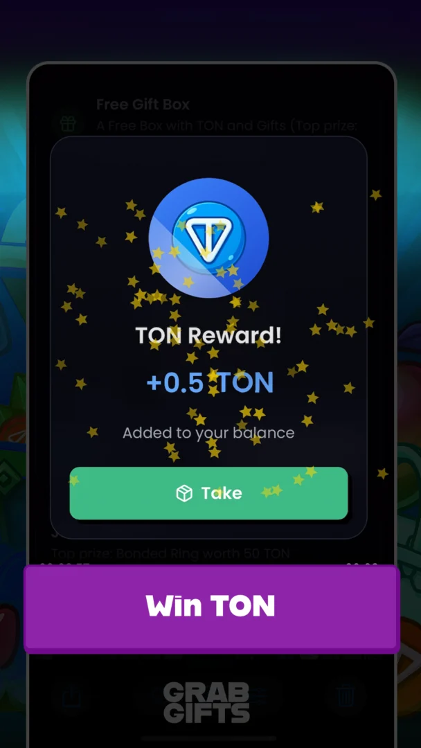 In GrabGifts, players choose a box tier, ranging from a free option to 1 TON, 5 TON, and 50 TON entries, open the box, and instantly receive their reward within Telegram. Prizes span from stickers and Premium features to higher-value Telegram Gifts, and players can sell prizes back or withdraw them immediately. Engineered for speed and simplicity, the loop runs entirely in Telegram.